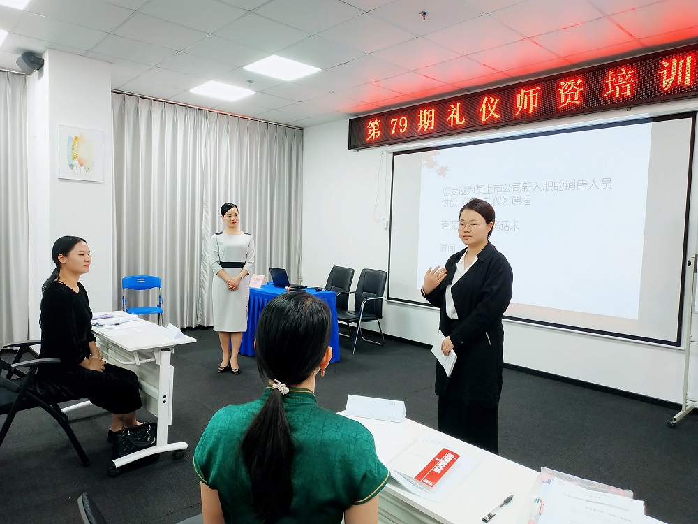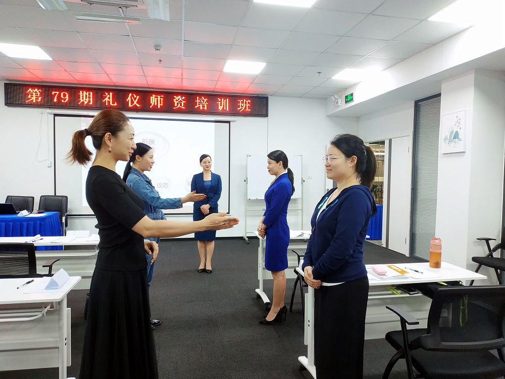 下午學(xué)習(xí)時間段,時淑妍老師繼續(xù)給學(xué)員們講授《禮儀應(yīng)用基礎(chǔ)梳理》課程。時老師主要從禮儀培訓(xùn)方法設(shè)計、內(nèi)容篩選及禮儀教師的四心修煉,充分將禮儀教學(xué)的方式、方法傳授給各位學(xué)員,并強調(diào)實際、實用、實效。課上從不同的禮儀姿態(tài)一一示范講解,對比不同之處及所用場合,將禮儀按實用性歸納出適合各類型的企業(yè)培訓(xùn)、及人們實際工作生活中。