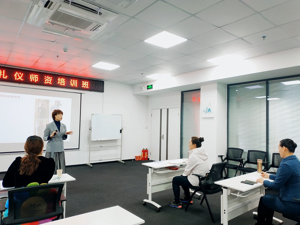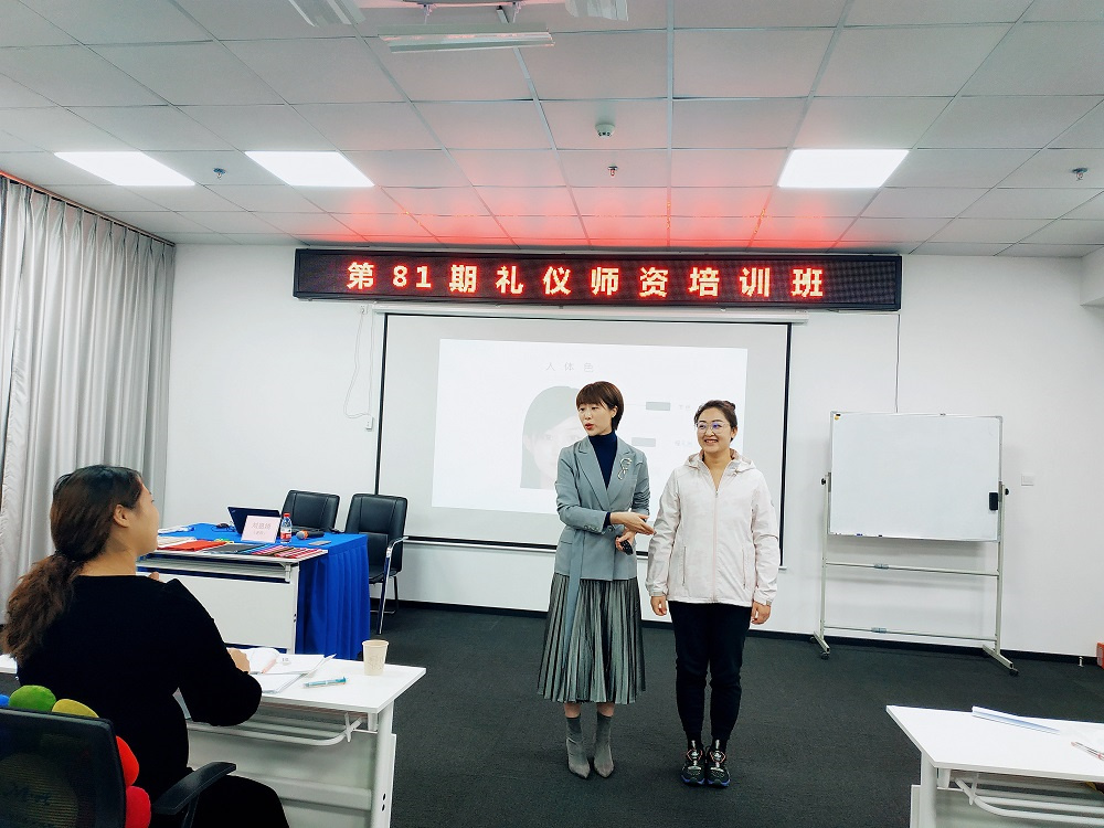 宣誓結(jié)束后,時淑妍老師給大家講授了《禮儀應(yīng)用基礎(chǔ)梳理》課程。時老師為學(xué)員們講授了禮儀培訓(xùn)師的形象塑造,并系統(tǒng)梳理了四大類的禮儀知識。