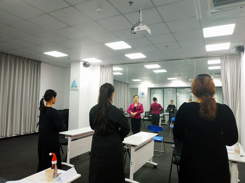 時淑妍老師為學(xué)員們講授了作為禮儀培訓(xùn)師職業(yè)風(fēng)采的禮儀細(xì)節(jié),并讓學(xué)員們逐一練習(xí),通過指導(dǎo)力求讓每位學(xué)員都能盡快掌握禮儀培訓(xùn)師的現(xiàn)場授課的風(fēng)采及技巧。