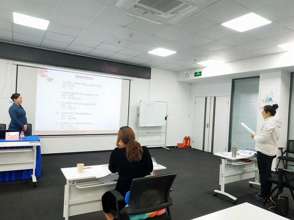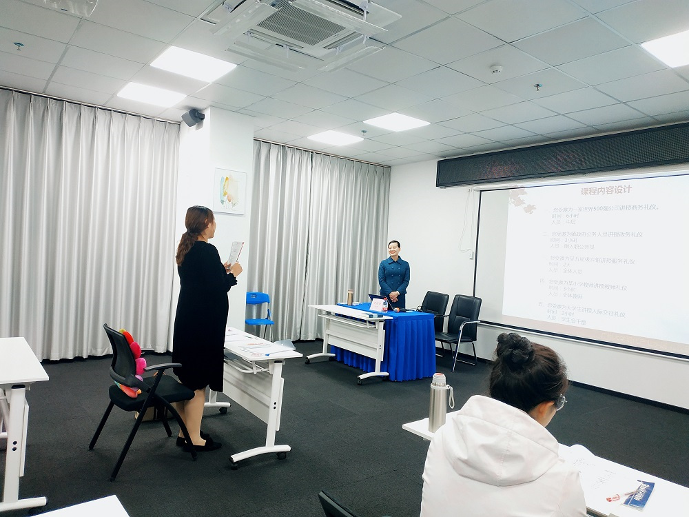 當(dāng)天下午課程,由時淑妍老師為師資班學(xué)員們進(jìn)行《實際、實用、實效的禮儀教學(xué)體系》和《禮儀培訓(xùn)師的實用培訓(xùn)技巧》課程講授。