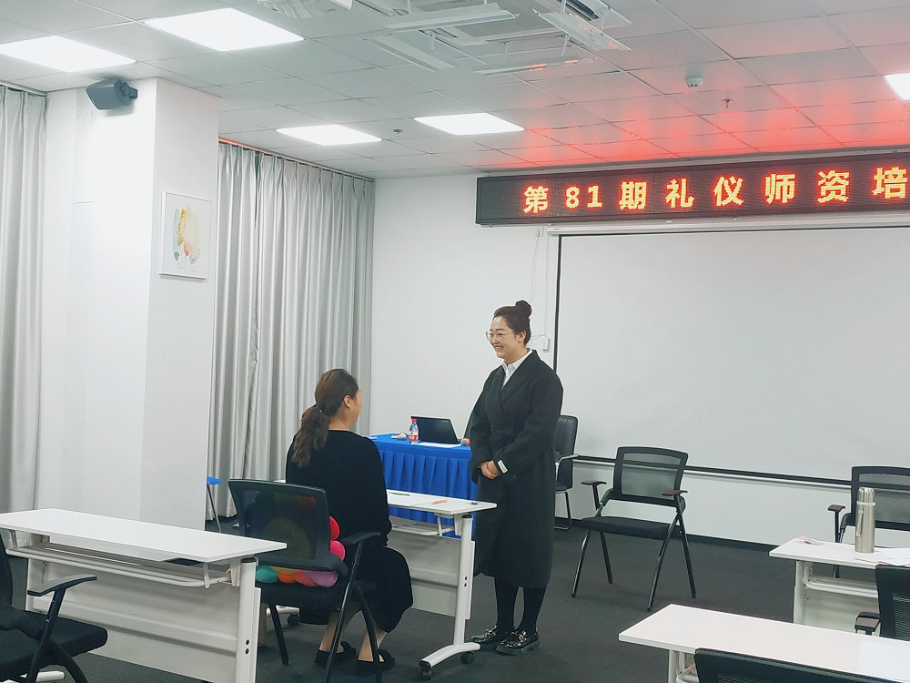 接著,時淑妍老師給大家講述禮儀概述及其分類梳理、企事業(yè)單位禮儀培訓(xùn)分類梳理。課堂上舉例、視頻教學(xué)、實操演練等教學(xué)方式,使學(xué)員們更加深入學(xué)習(xí)與理解。最后,進(jìn)行講學(xué)測評講授,將課程落實到實際運用當(dāng)中!