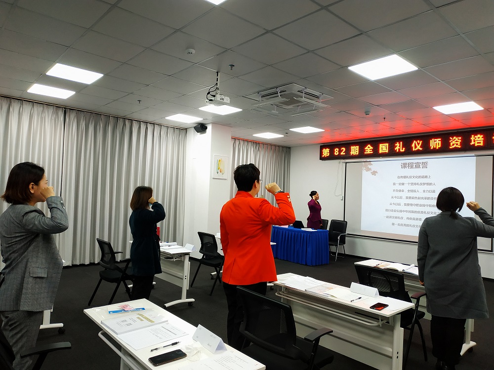 學(xué)員們進(jìn)行禮儀培訓(xùn)師宣誓儀式