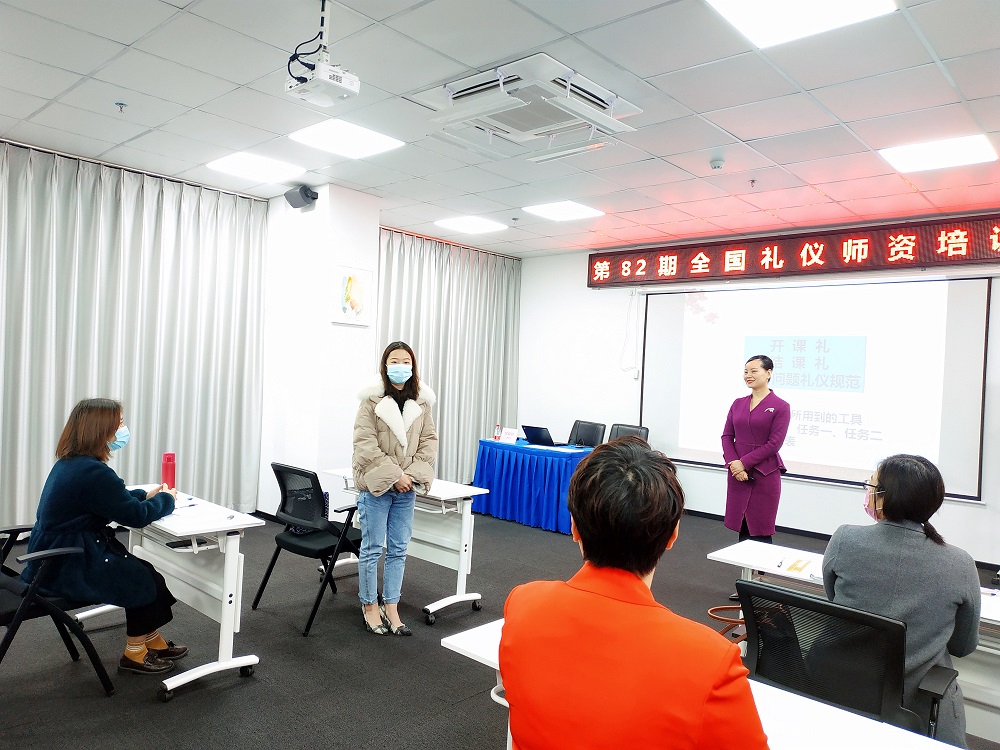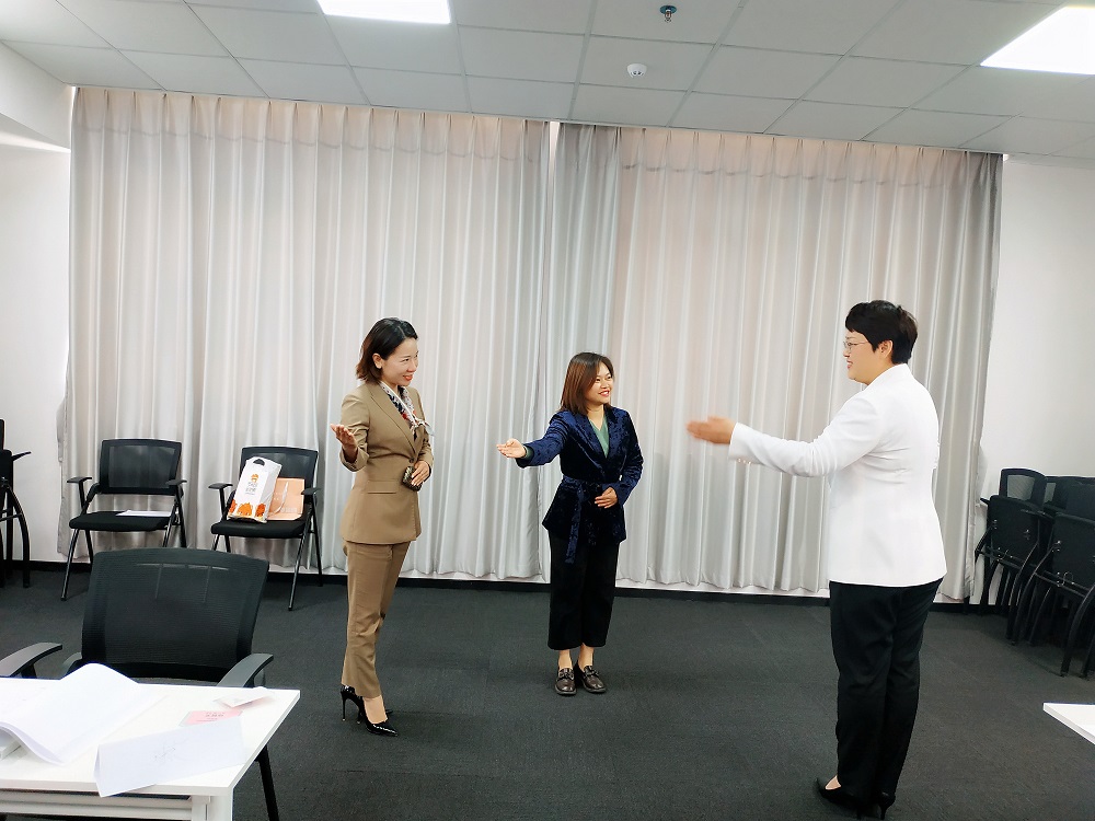 時(shí)淑妍老師為學(xué)員們講授了作為禮儀培訓(xùn)師職業(yè)風(fēng)采的禮儀細(xì)節(jié),并讓學(xué)員們逐一練習(xí),通過(guò)指導(dǎo)力求讓每位學(xué)員都能盡快掌握禮儀培訓(xùn)師的現(xiàn)場(chǎng)授課的風(fēng)采及技巧。
