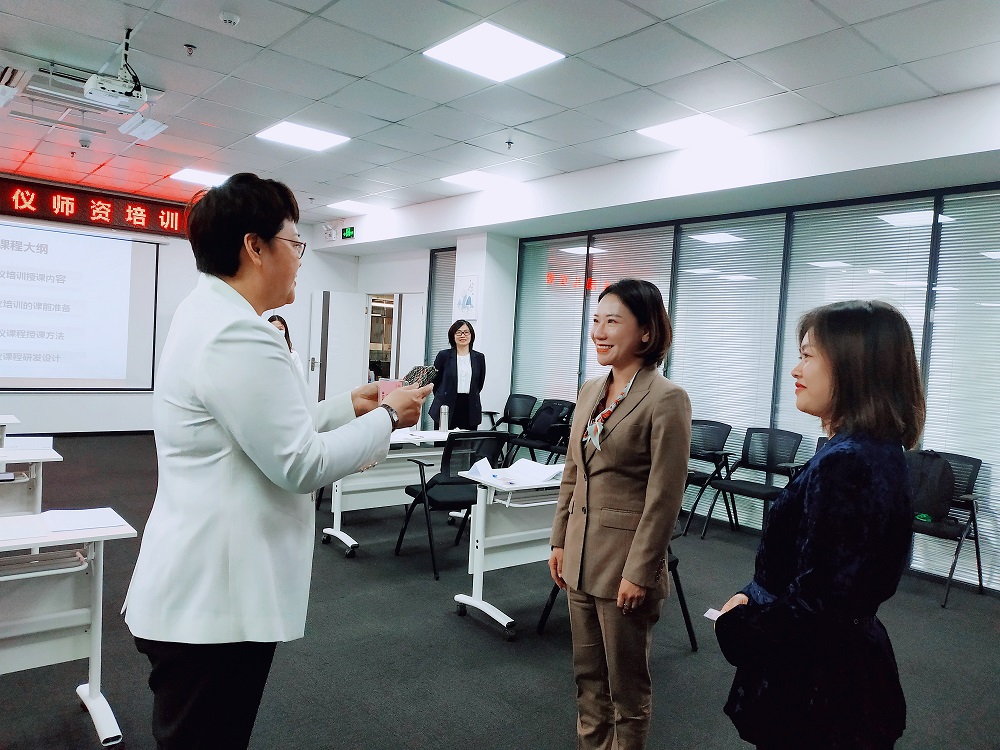 下午學(xué)習(xí)時(shí)間段,時(shí)淑妍老師繼續(xù)給學(xué)員們講授《禮儀應(yīng)用基礎(chǔ)梳理》課程。時(shí)老師主要從禮儀培訓(xùn)方法設(shè)計(jì)、內(nèi)容篩選及禮儀教師的四心修煉,充分將禮儀教學(xué)的方式、方法傳授給各位學(xué)員,并強(qiáng)調(diào)實(shí)際、實(shí)用、實(shí)效。