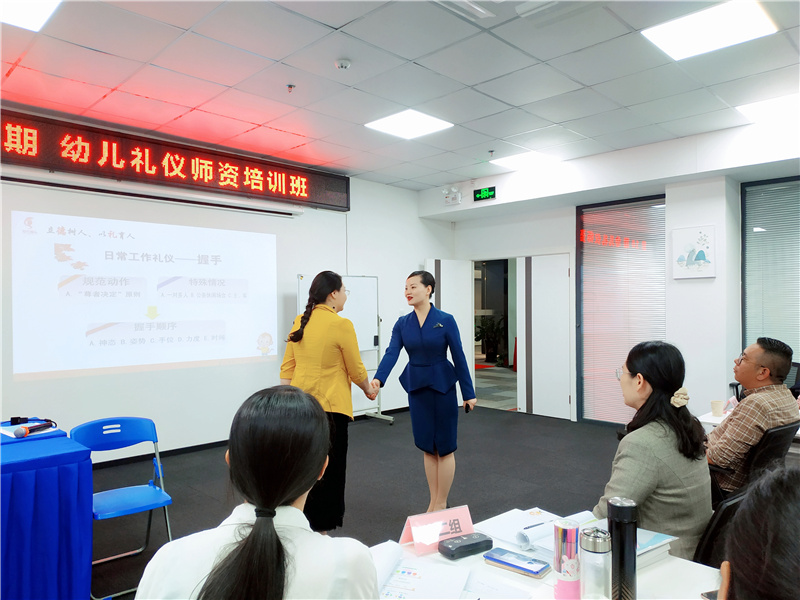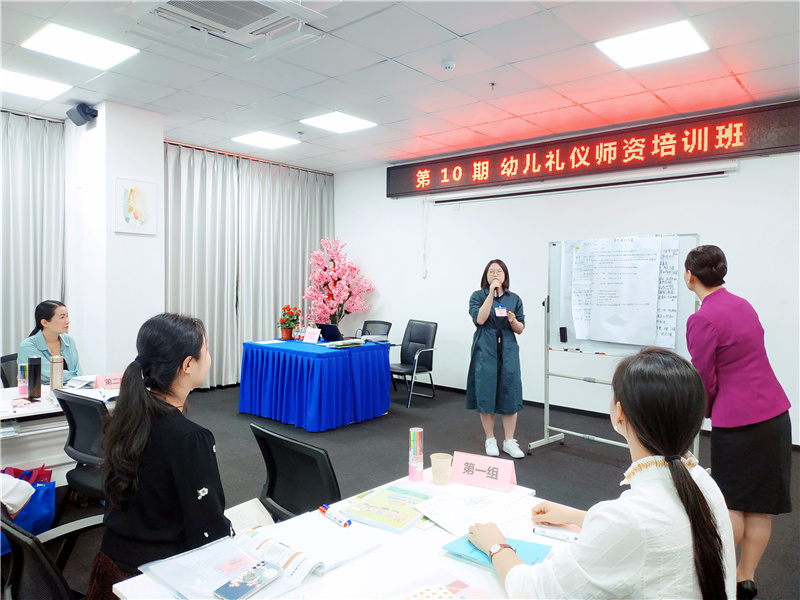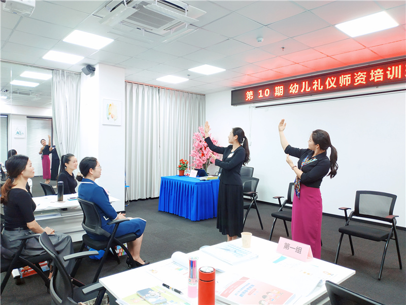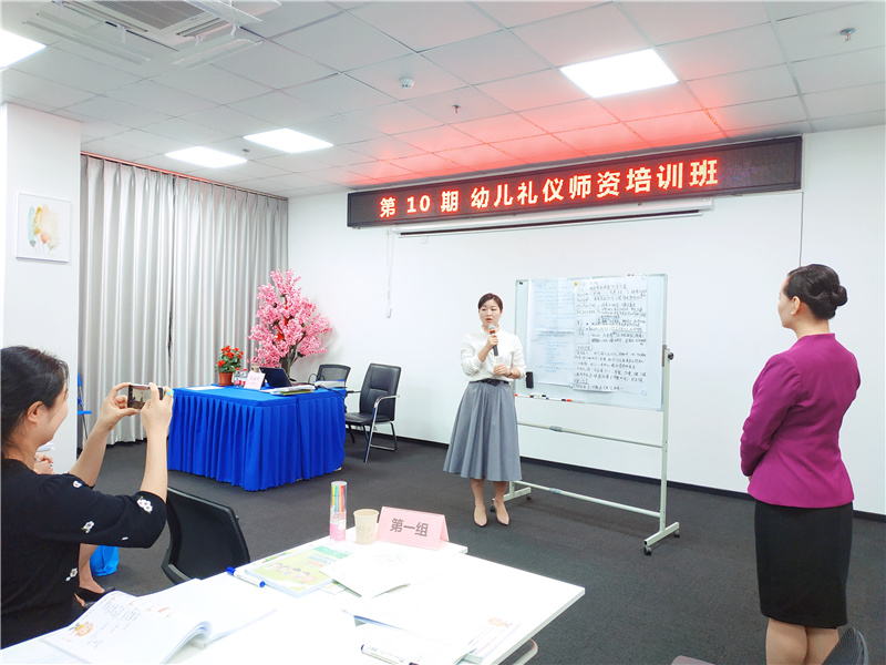 緊接著,時老師帶領(lǐng)學(xué)員,通過幼兒禮儀培訓(xùn)師不斷的反復(fù)演練實踐累積經(jīng)驗,進一步夯實了《幼兒禮儀素質(zhì)養(yǎng)成教育體系》授課基礎(chǔ)。