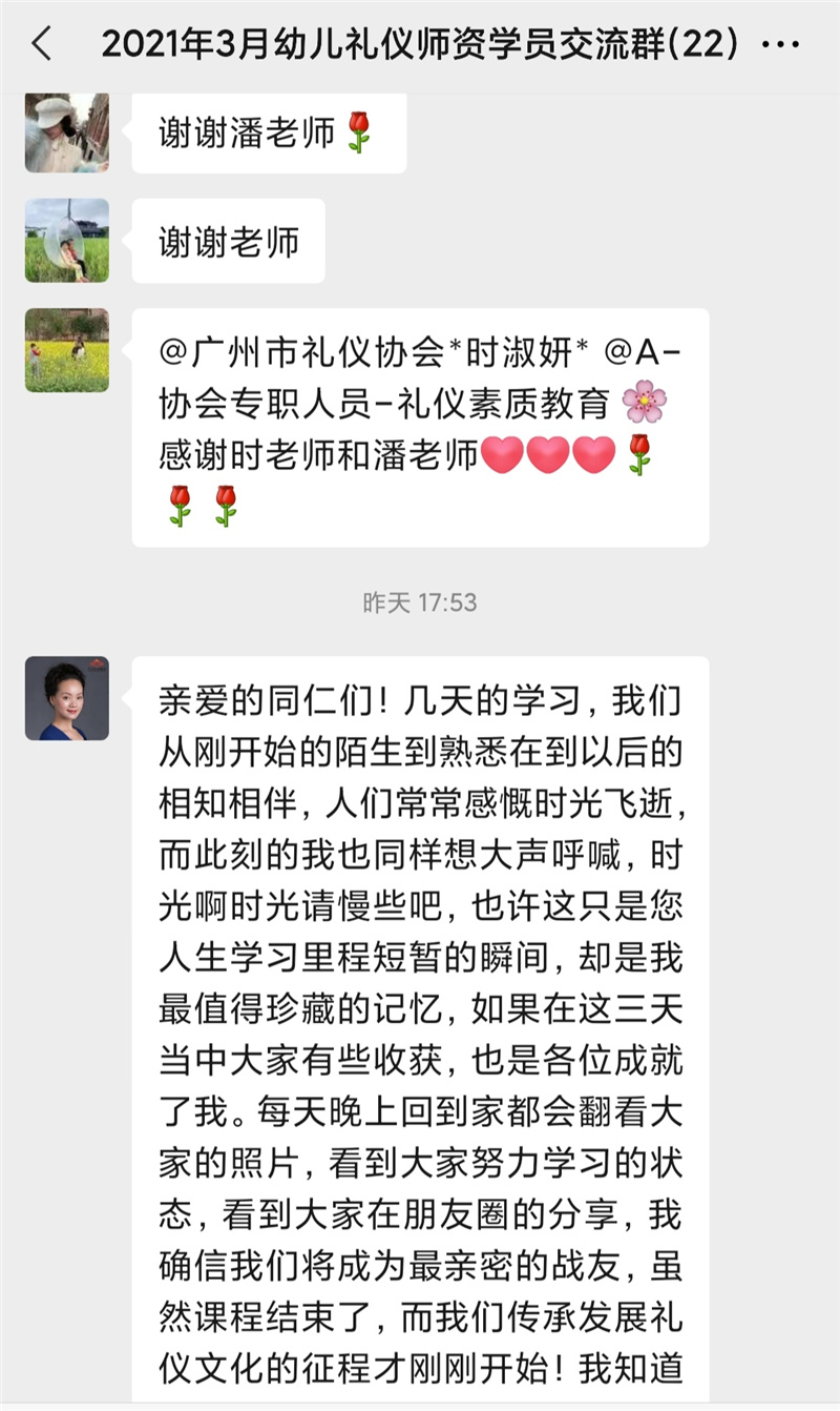 《全國幼兒禮儀師資培訓(xùn)班》三天的課程圓滿結(jié)束,感謝全體學(xué)員對本期課程與教學(xué)工作的積極配合、支持與關(guān)注!
