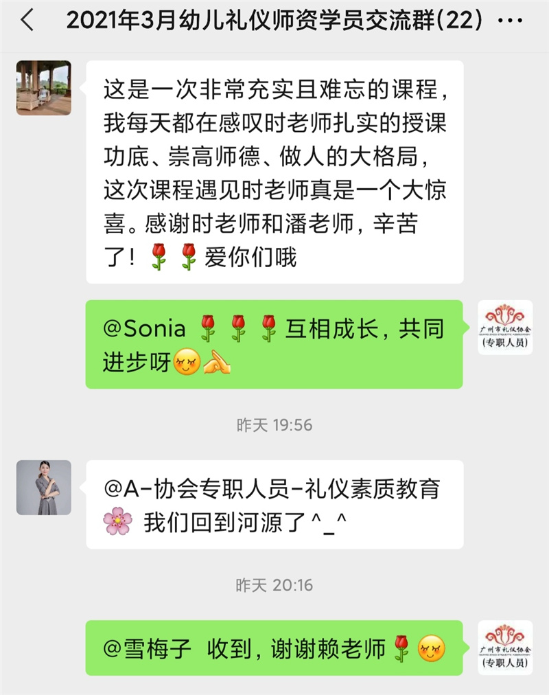 學(xué)員們通過本期幼兒禮儀師資培訓(xùn)學(xué)習(xí),不僅收獲了實用、實際、實效的禮儀教學(xué)方式與方法,也收獲了滿滿的友誼!