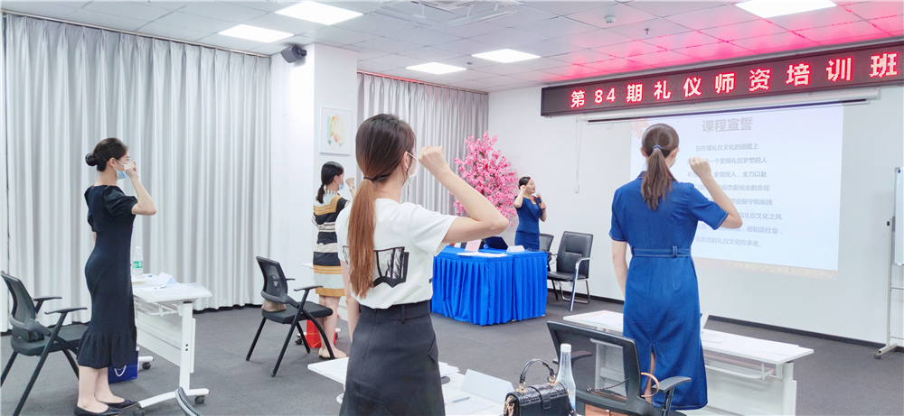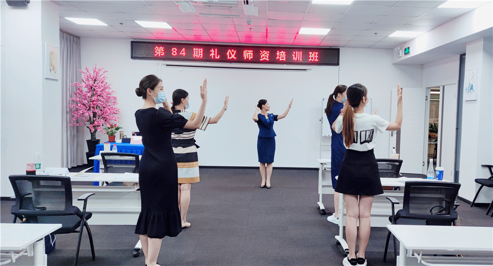 學(xué)員們進行禮儀培訓(xùn)師宣誓儀式