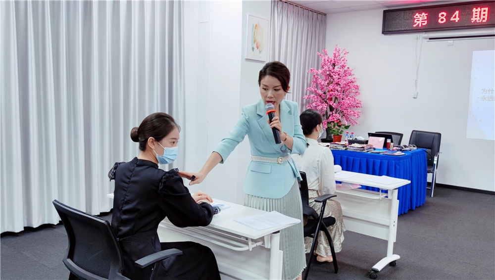 時淑妍老師針對各位學(xué)員的實操授課細節(jié)逐一點評,幫助學(xué)員完成人生路上的蛻變,并且督導(dǎo)大家在傳播禮儀文化的道路上,要做到內(nèi)外兼修!
