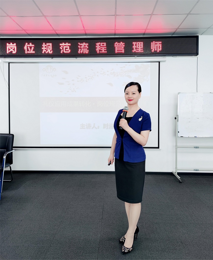 第一天課程,由廣州市禮儀協(xié)會(huì)會(huì)長(zhǎng)、資深禮儀培訓(xùn)師,高級(jí)禮儀培訓(xùn)師,禮儀成果轉(zhuǎn)化體系研發(fā)者時(shí)淑妍老師,為學(xué)員們帶來了《崗位規(guī)范流程管理》課程。